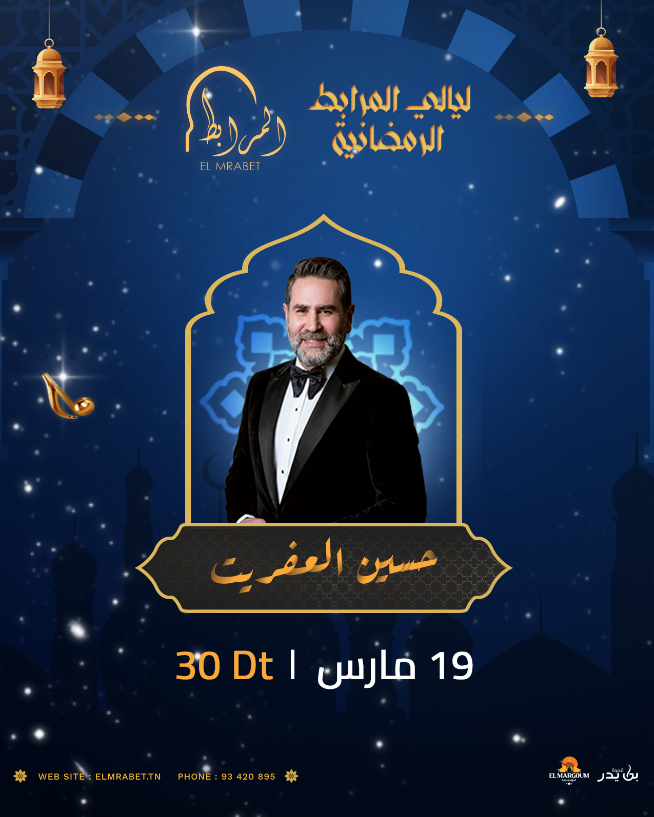 د.ت 30,000 19 mars 2026 quantité de Houssine Eleffrit Ajouter au panier Catégrie: Soirée Ramadanesque 2026 Cliquez pour partager sur Facebook(ouvre dans une nouvelle fenêtre)Cliquez pour partager sur Twitter(ouvre dans une nouvelle fenêtre)Cliquez pour partager sur Pinterest(ouvre dans une nouvelle fenêtre)Cliquez pour partager sur Tumblr(ouvre dans une nouvelle fenêtre) Avis (0) Avis Il n’y a pas encore d’avis. Soyez le premier à laisser votre avis sur “Houssine Eleffrit” Annuler la réponseVotre adresse e-mail ne sera pas publiée. Les champs obligatoires sont indiqués avec *Your Rating Évaluation... Parfait Bon Moyen Pas mal Very Poor Your ReviewNom * E-mail * Enregistrer mon nom, mon e-mail et mon site dans le navigateur pour mon prochain commentaire. For security, use of hCaptcha is required which is subject to their Privacy Policy and Terms of Use.I agree to these terms (required).