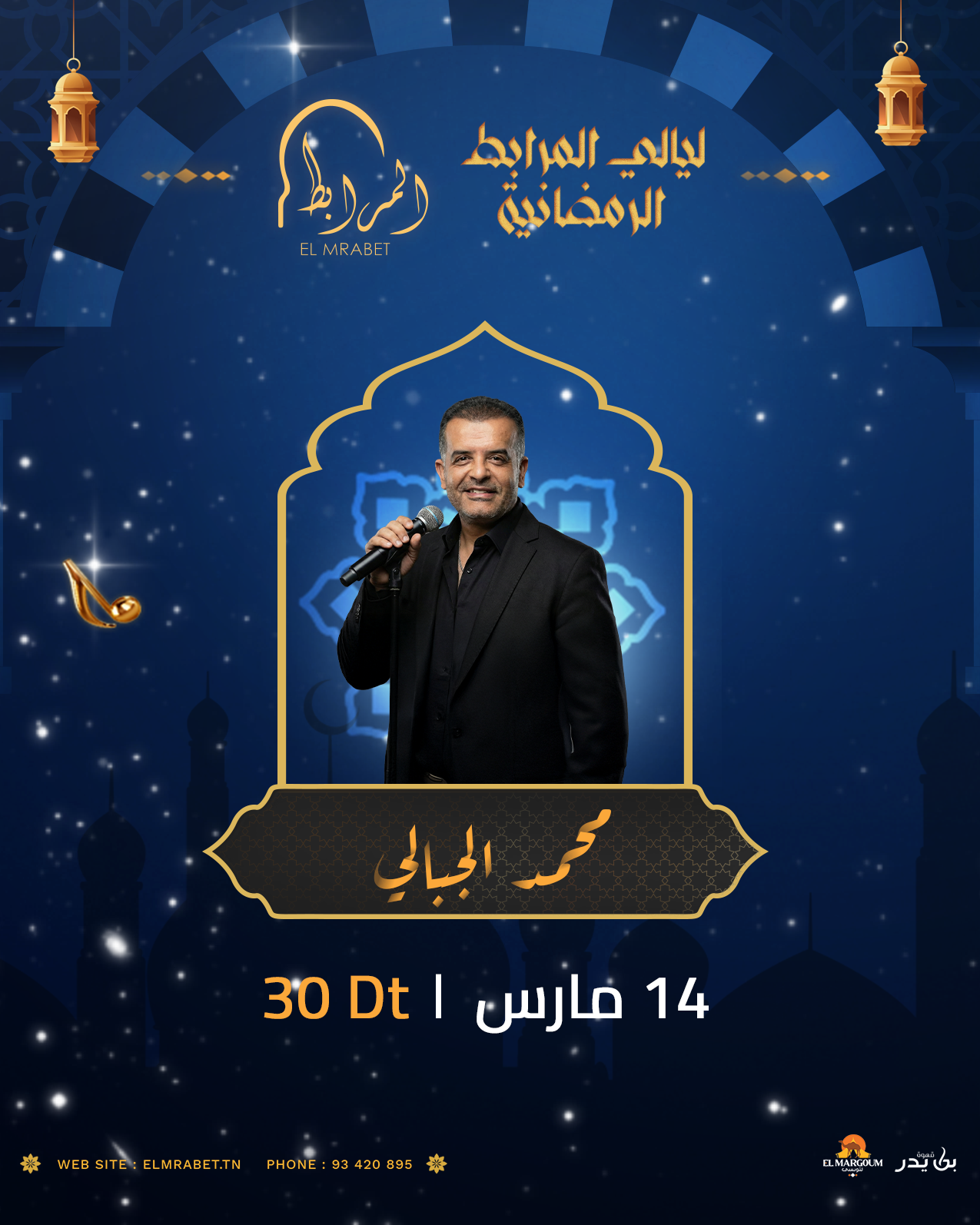د.ت 30,000 14 mars 2026 quantité de Mohamed Jbeli Ajouter au panier Catégrie: Soirée Ramadanesque 2026 Cliquez pour partager sur Facebook(ouvre dans une nouvelle fenêtre)Cliquez pour partager sur Twitter(ouvre dans une nouvelle fenêtre)Cliquez pour partager sur Pinterest(ouvre dans une nouvelle fenêtre)Cliquez pour partager sur Tumblr(ouvre dans une nouvelle fenêtre) Avis (0) Avis Il n’y a pas encore d’avis. Soyez le premier à laisser votre avis sur “Mohamed Jbeli” Annuler la réponseVotre adresse e-mail ne sera pas publiée. Les champs obligatoires sont indiqués avec *Your Rating Évaluation... Parfait Bon Moyen Pas mal Very Poor Your ReviewNom * E-mail * Enregistrer mon nom, mon e-mail et mon site dans le navigateur pour mon prochain commentaire. For security, use of hCaptcha is required which is subject to their Privacy Policy and Terms of Use.I agree to these terms (required).